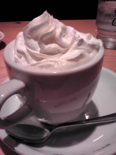 カフェオレにたっぷりな生クリームをトッピング♪
